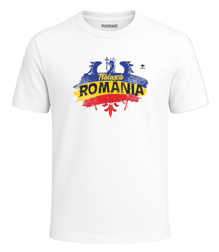 Tricou Trăiască România, alb, PAT17